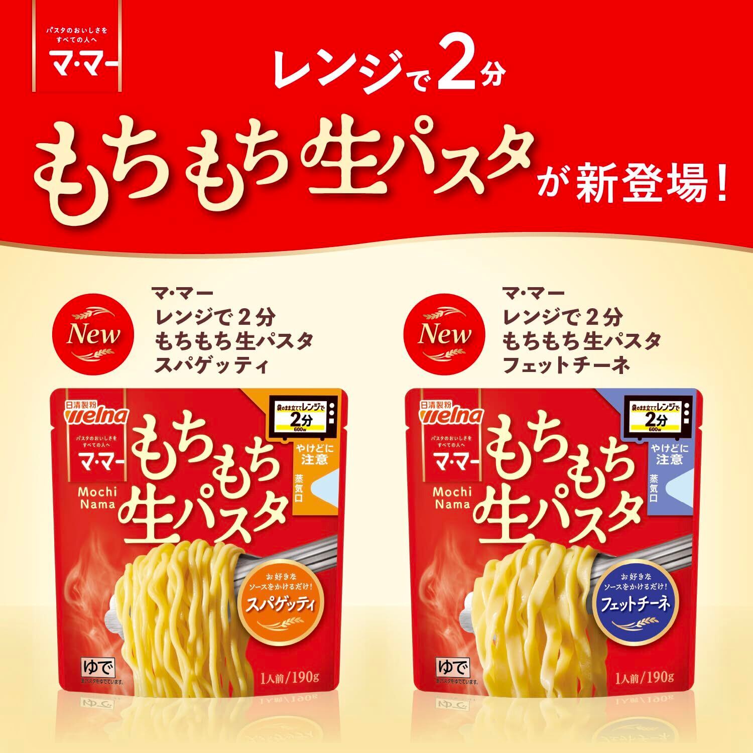 レンジで2分でできる利便性と、もちもち食感のおいしさを両立したフェットチーネです。