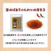 幻の国産唐辛子、香川本鷹を使用した【薬味ばあちゃんの七味唐辛子10g】も付いていますので、いろいろな料理にちょっとふりかけ、2辛5香が作り出す味の変化をお楽しみください。登録済み【:第6240294号】
