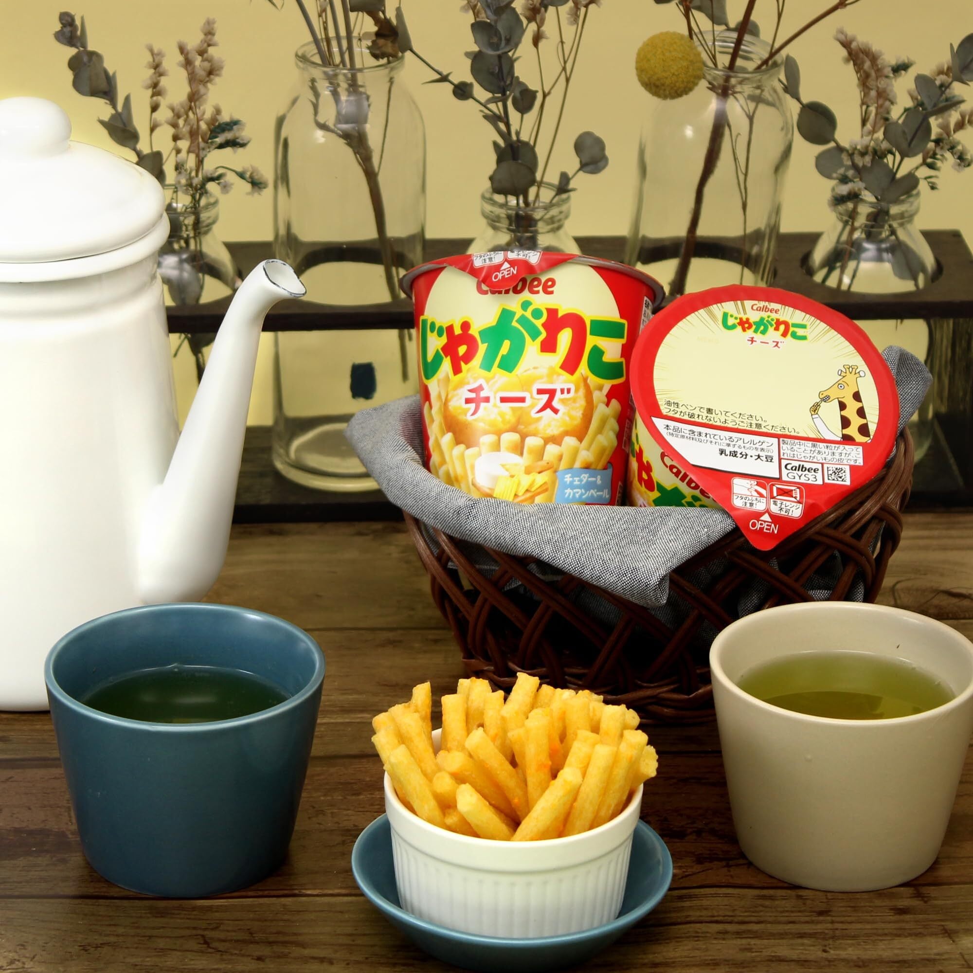 じゃがいも(国産)、植物油、乾燥じゃがいも、チェダーチーズ、チーズソース、ホエイパウダー、粉末植物油脂、食塩、ホワイトペッパー、カマンベールチーズパウダー / 乳化剤(大豆を含む)、調味料(アミノ酸等)、カロチノイド色素、香料、水酸化Ca、酸化防止剤(V.C)
