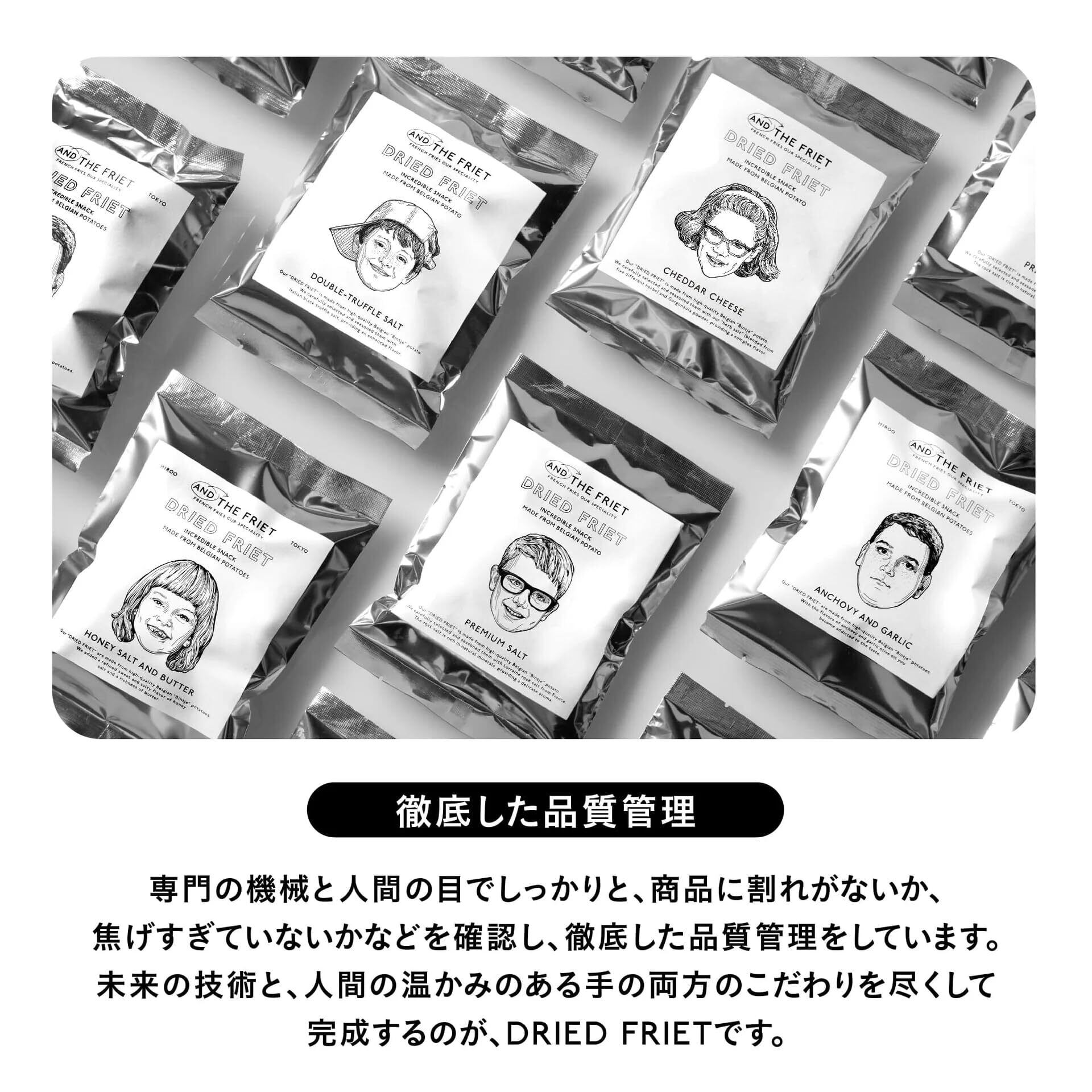 東京・広尾のフレンチフライ専門店が数年かけて開発したスナック、DRIED FRIET(ドライフリット)。フレンチフライ専門店で人気のある芋やフレーバーのおいしさをそのまま閉じ込め、新感覚のプレミアムスナックが誕生しました。