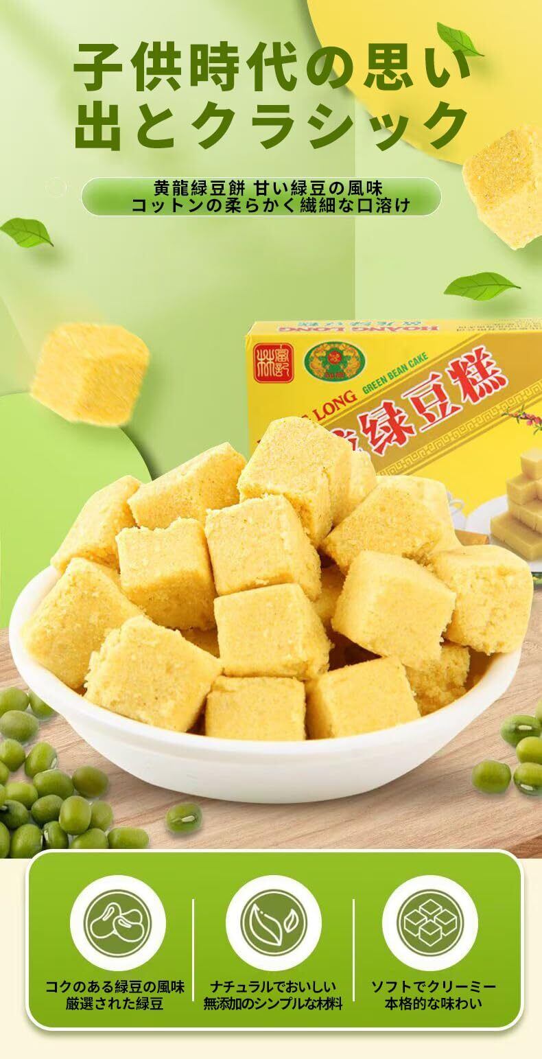 绿豆糕 厳選された緑豆 きめ細かい食感 個包装 緑豆ケーキ 老式绿豆糕 冰沙绿豆酥 緑豆 豆餅 ベトナム緑豆餅 伝統菓子スナック 即食美味糕点 越南小吃 即食お菓子 (200g/1箱, 抹茶フレーバー)