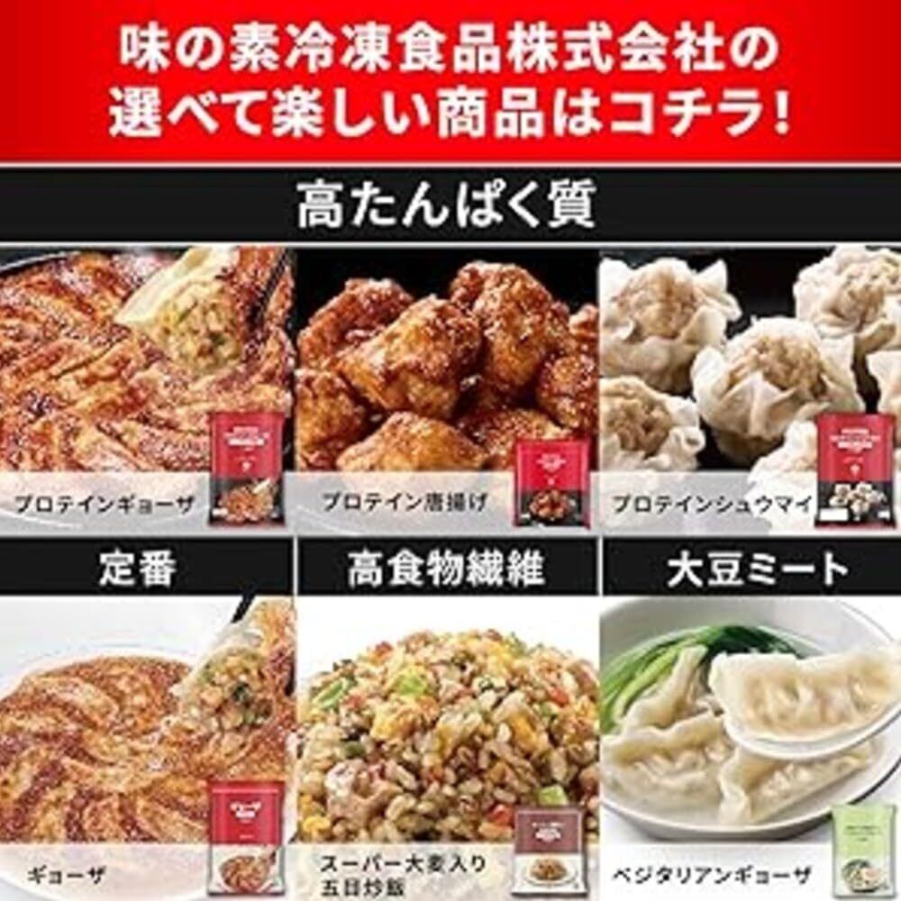 野菜(キャベツ、たまねぎ、にら、にんにく)、食肉(豚肉、鶏肉)、粒状大豆たん白、豚脂、砂糖、しょ うゆ、なたね油、食塩、つなぎ(粉末状大豆たん白、卵白)、風味油、オイスターソース、ごま油、香辛料 、調味エキス、酵母エキス、皮(小麦粉、でん粉、なたね油、食塩、粉末状小麦たん白、粉末状大豆たん白 、大豆粉)/ 調味料(アミノ酸等)、乳化剤、クエン酸Na、増粘剤(増粘多糖類、アルギン酸Na)、塩化Ca 、カゼインNa、香辛料抽出物、(一部に小麦・卵・乳成分・ごま・大豆・鶏肉・豚肉を含む)