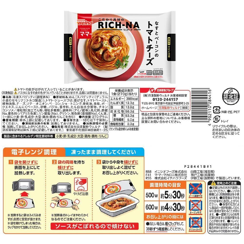 [冷凍] 日清製粉ウェルナ マ・マー RICH-NA (リッチーナ) 8種X各1個 バラエティセット 2070g