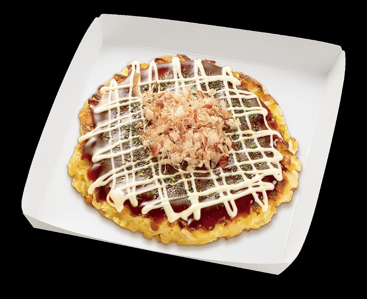 【お好み焼】野菜〔キャベツ(国産)、ねぎ、やまいも〕、全卵、小麦粉、魚肉(いか、えび)、牛脂、卵白、食塩、こんぶエキス調味料、砂糖、風味調味料、香辛料/トレハロース、調味料(アミノ酸等)、増粘剤(キサンタンガム)、(一部にえび・小麦・卵・乳成分・いか・牛肉・大豆・やまいもを含む) 【ソース】糖類(砂糖、果糖ぶどう糖液糖)、野菜・果実(トマト、りんご、たまねぎ、にんにく)、たん白加水分解物、醸造酢、食塩、香辛料/増粘剤(加工デンプン)、カラメル色素、調味料(アミノ酸等)、酸味料、(一部に大豆・りんごを含む) 【マヨネーズ風ソース】食用植物油脂、砂糖、卵黄、醸造酢、食用精製加工油脂、食塩、乳たん白、香辛料/加工デンプン、調味料(アミノ酸)、(一部に卵・乳成分を含む) 【かつお削りぶし】かつおぶし 【あおさ加工品】あおさ