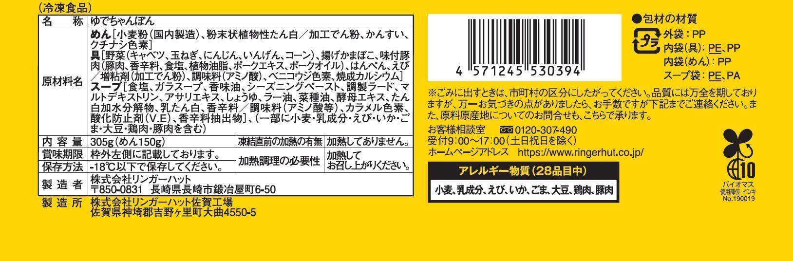 [冷凍] リンガーハットの長崎ちゃんぽん 305g×6袋