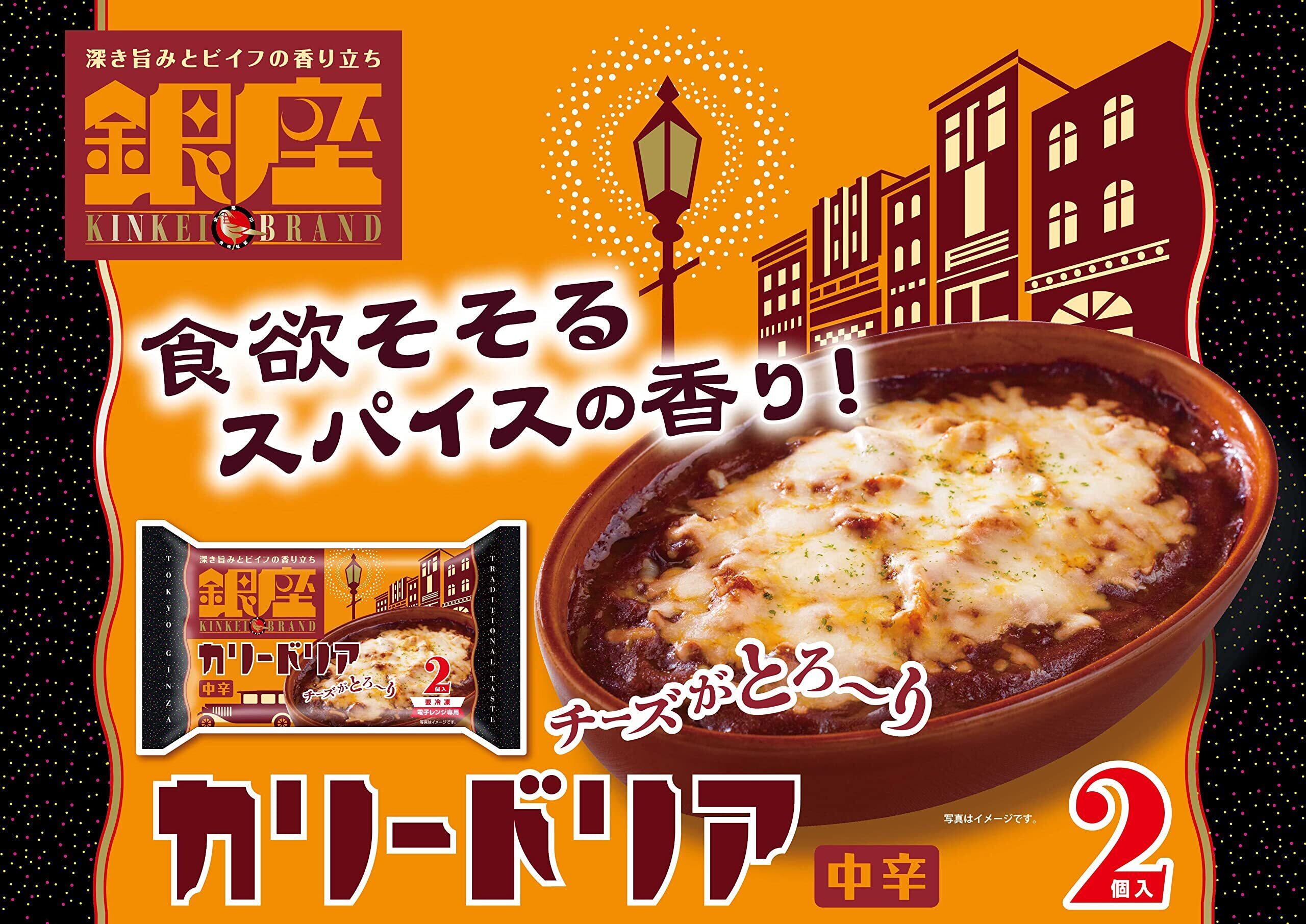 深き旨みとビイフの香り立ち。レトルトカレーの銀座カリー中辛のおいしさとバター風味ピラフを、ゴーダチーズでまろやかに仕上げました。こだわりの「二段仕込みブイヨン」※を使用した「銀座カリー」ならではの香り立ちを楽しめるドリアです。※牛肉と香味野菜を2回に分けて一晩炊き出した本格ブイヨンです。コクと旨みに豊かな香り立ちを加えた、「銀座カリー」シリーズのおいしさの秘訣です。