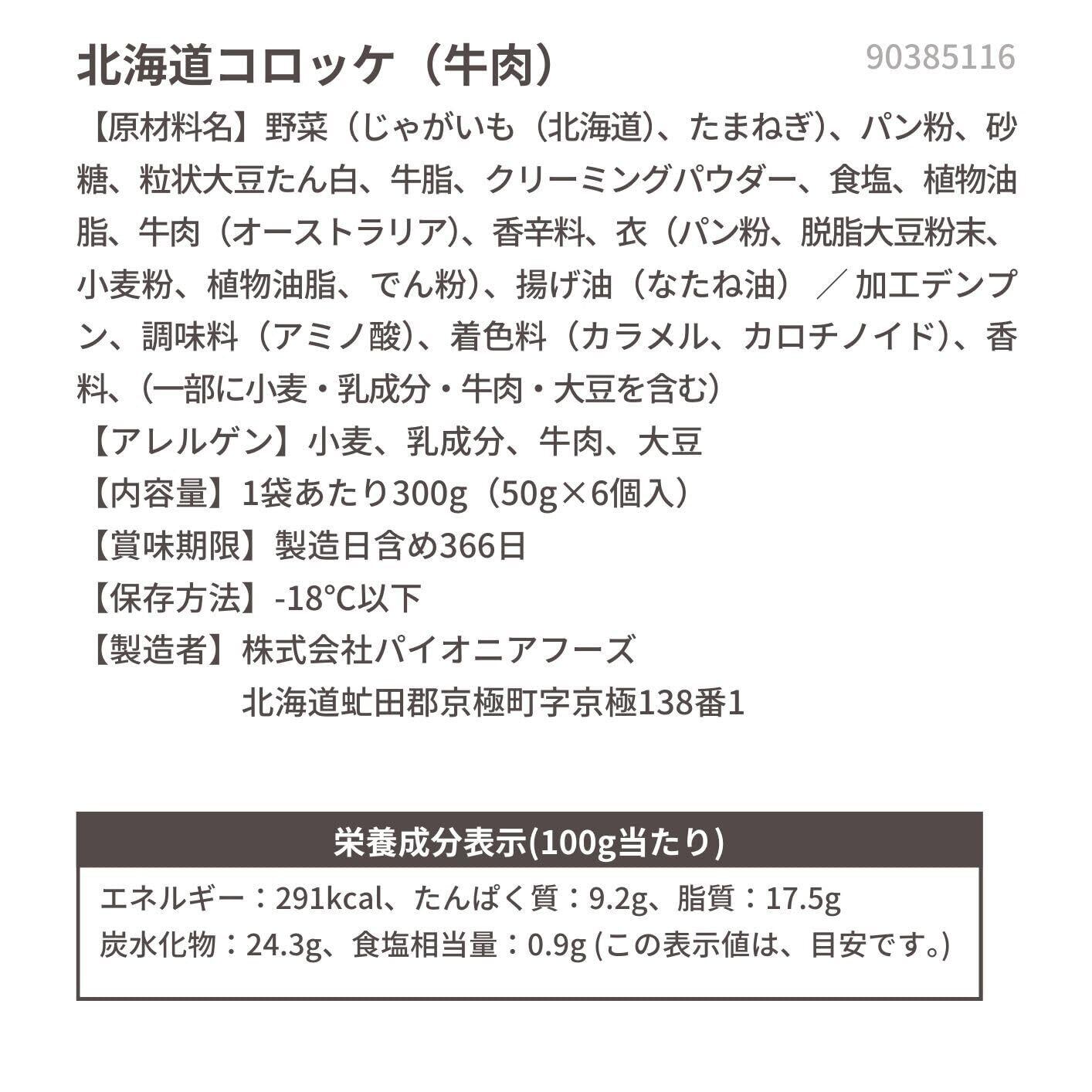【北海道産じゃがいも使用】北海道産の新鮮な素材を、羊蹄山麓の水と生パン粉を使って、サクッとおいしく仕上げました。北海道の気候で甘みたっぷりに仕上げたじゃがいもと良質な水質が評価され『名水百選』にも選ばれてた羊蹄山麓の水を使用しております