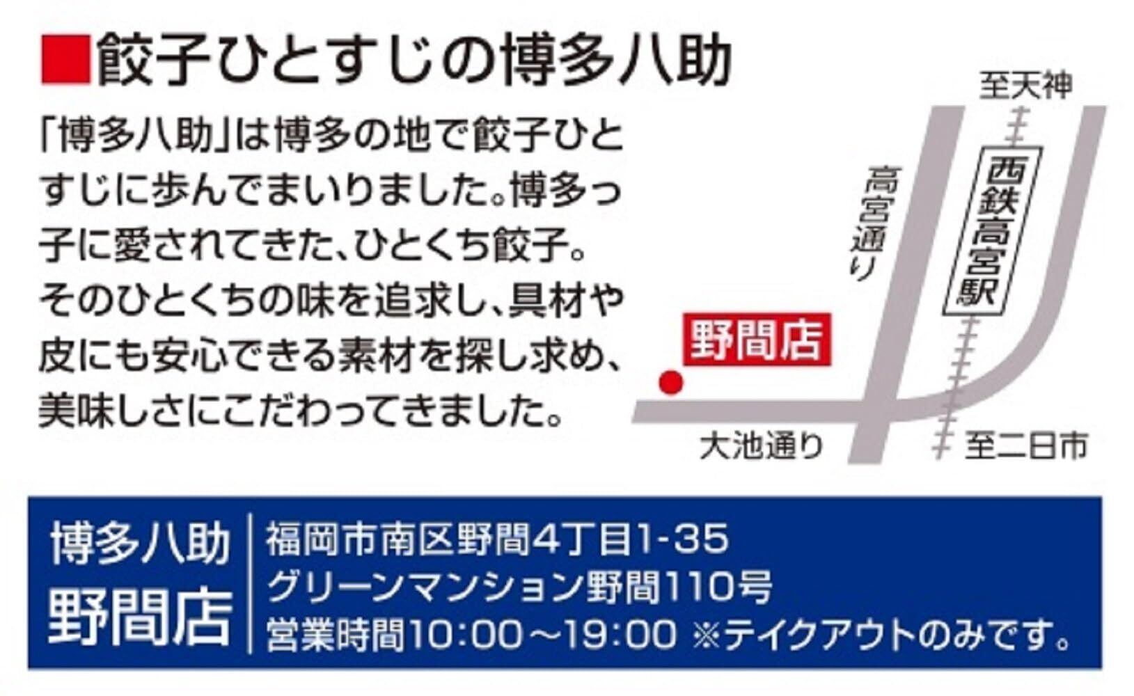 博多八助は通販サイトとテイクアウト専門の餃子店です。ひとすじに作り続けたは“ひとくち餃子"は、皮も具も長年の経験で選び抜いたものばかり、暖簾の味を守りながら小さく包まれたその“ひとくち"に心を込めて、幸せの味をお届けします。国産玉葱をベースに国産豚肉・鶏肉を使用した、パリッと薄皮でジューシーなひとくち餃子です。