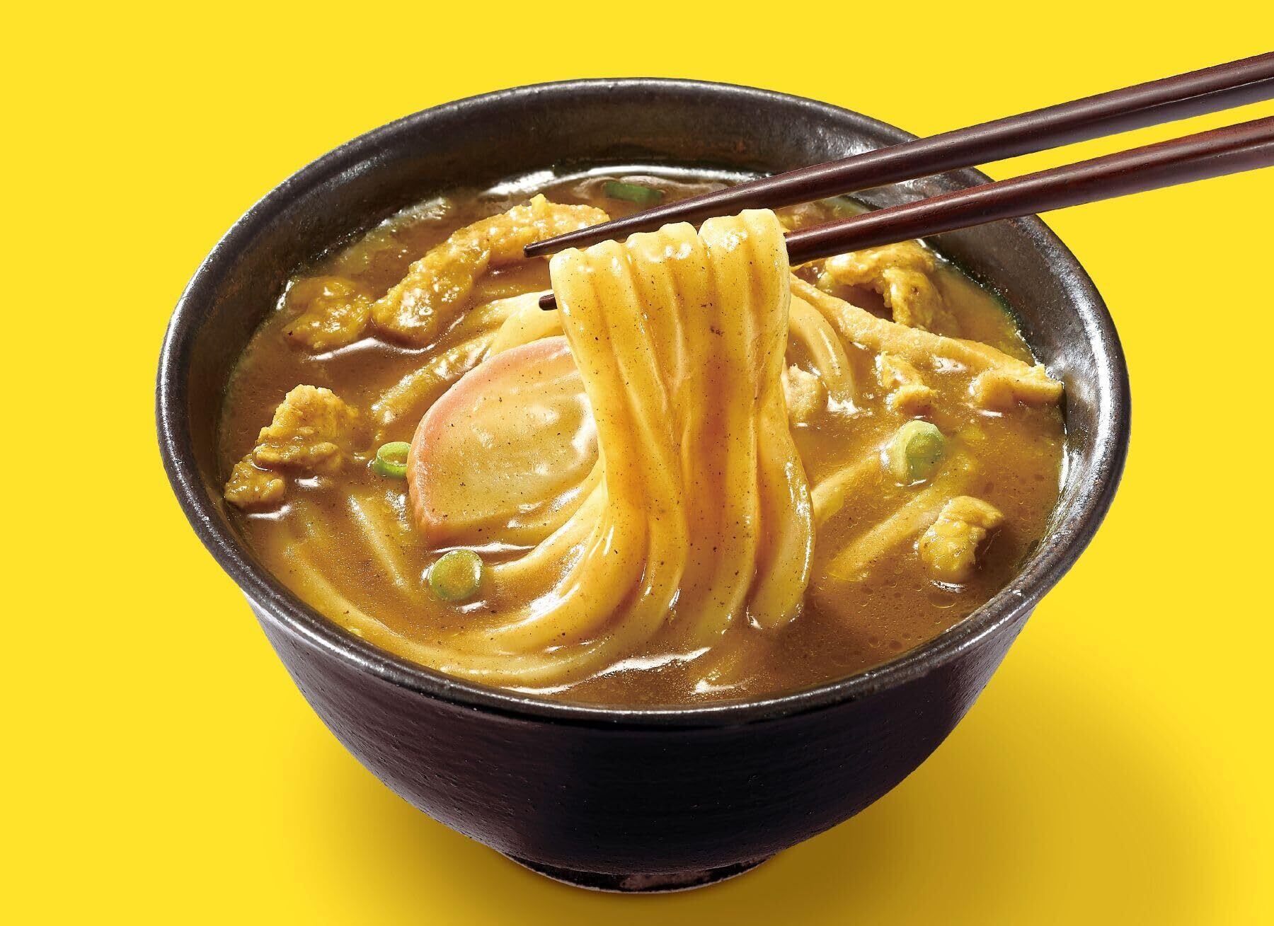 強いコシ、モチモチした食感のうどんに、ココイチ自慢のカレースープ。赤かまぼこ、鶏肉、青ねぎ、きざみ揚げと具材もたっぷり入ったカレーうどんです。