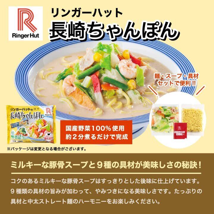 【内容量】・リンガーハットの長崎ちゃんぽん(1食305g)×2袋・リンガーハットの長崎皿うどん(1食244g)×2袋・直火炒めチャーハン(1袋230g)×4袋