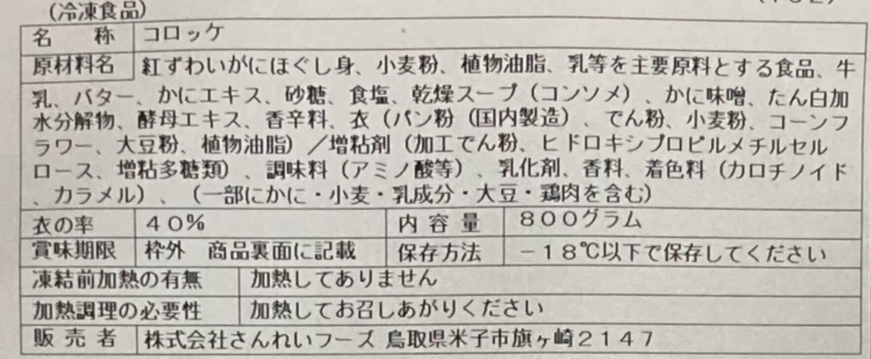さんれいフーズ 【国産冷凍】かに屋がつくったかにのクリームコロッケ (40g×20個)