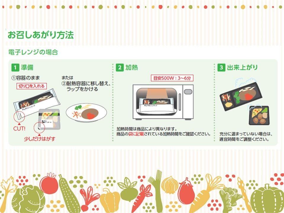 封に切り込みを入れて、電子レンジであたためて、お召し上がりください。