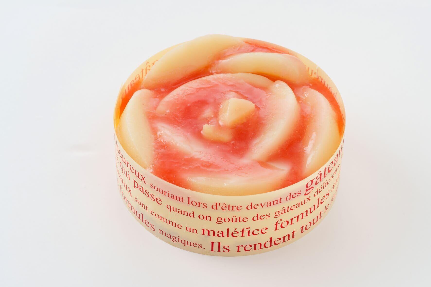 赤く色づけたナパージュで艶を出し、お花に見立てた華やかなケーキ。
