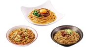 【まぜ麺亭ニンニクまぜそば】●めん:噛み応えのある極太ワシワシちぢれ麺 ●たれ:ニンニクのフレッシュな味がガツンとくる、背脂入りのこってり豚骨醤油味。 ●具:炙り焼豚、刻みニンニク、背脂、キャベツ、ニラ。【まぜ麺亭台湾まぜそば】●めん:もちっと食べ応えのある極太ストレート麺。 ●たれ:魚粉のきいた濃厚なたれで、赤唐辛子と黒胡椒の刺激的な辛さがクセになる辛うま醤油味に仕上げました。 ●具:しっかり味付け挽き肉、ニラ。【まぜ麺亭焼豚油そば】新! 特製こんぶ酢パック付き。黒胡椒香るこく旨醤油味。噛み応え抜群の極太ストレート麺に醤油ベースの濃厚なかえしとコク深い油にキレのあある黒胡椒がアクセントの濃旨だれ。炙り焼豚、ねぎ入り。こんぶの旨みとさっぱりとした酸味をあわせた別添特製こんぶ酢パック付き。