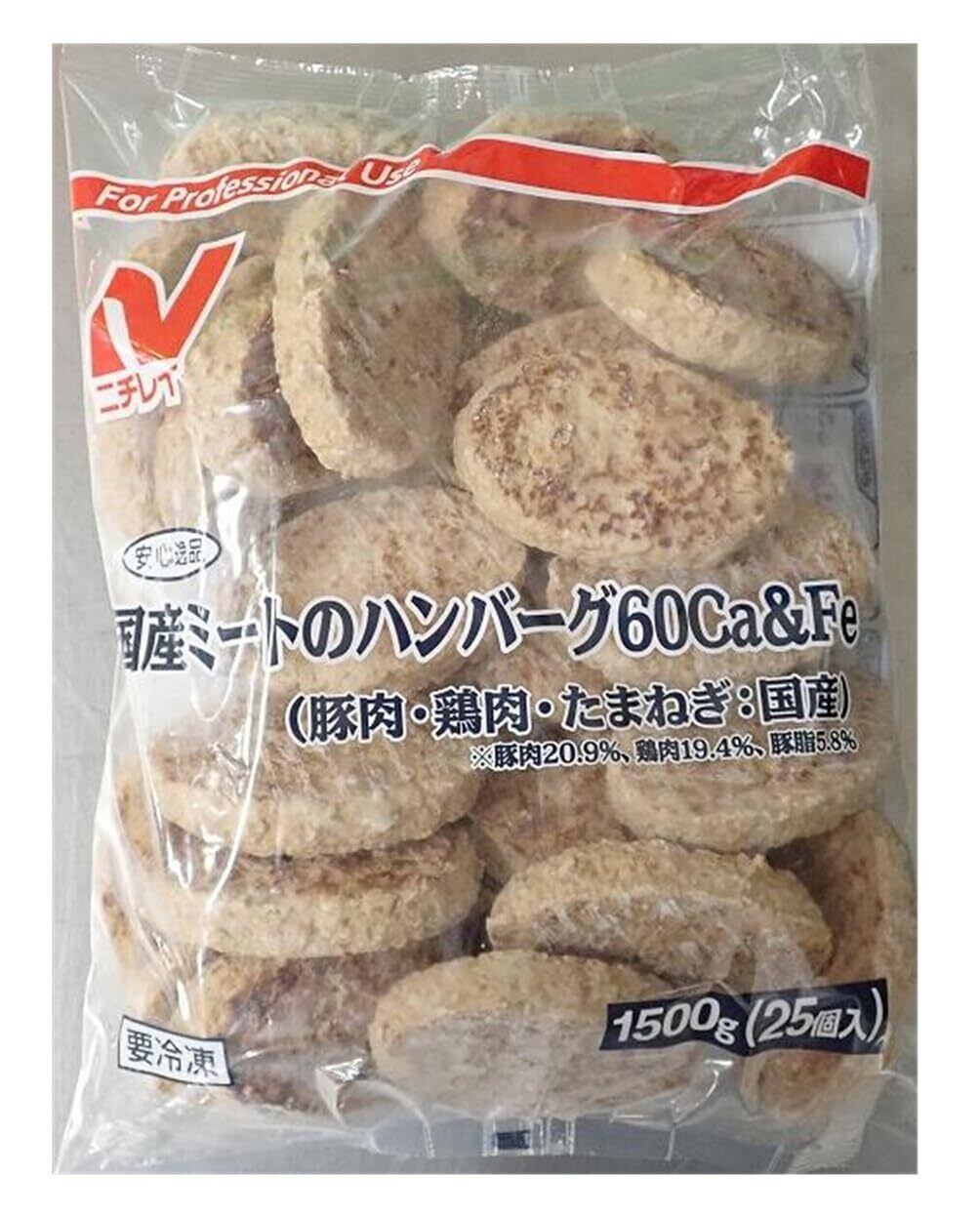 [冷凍] ニチレイ 業務用 安心逸品 国産ミートのハンバーグ60Ca&Fe(豚肉・鶏肉・たまねぎ:国産) 1500g(25個入)