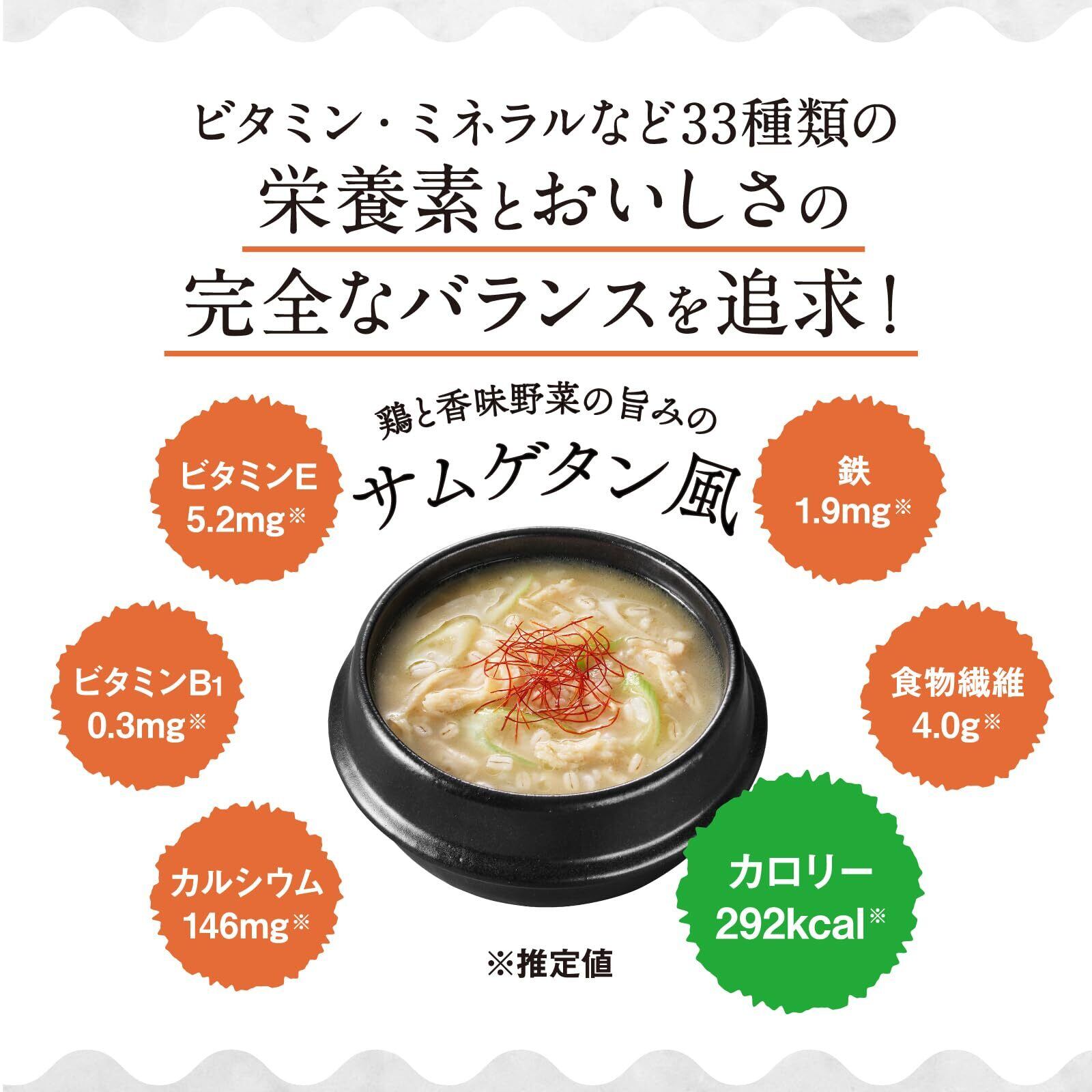 濃厚な鶏の旨みに高麗人参や香味野菜の香りがきいた優しい味わいのサムゲタン。鶏むね肉、ねぎ、白米、もち麦、糸唐辛子で彩りよく仕上げました。