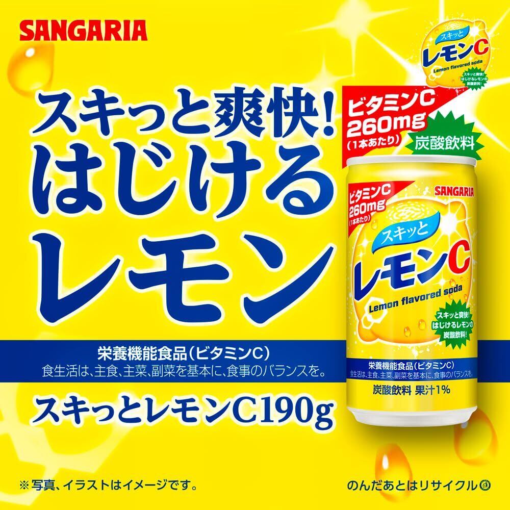 スキっと爽快!はじけるレモンの炭酸飲料!ほどよいレモンの酸味がおいしい爽やかな味わいの炭酸飲料です。