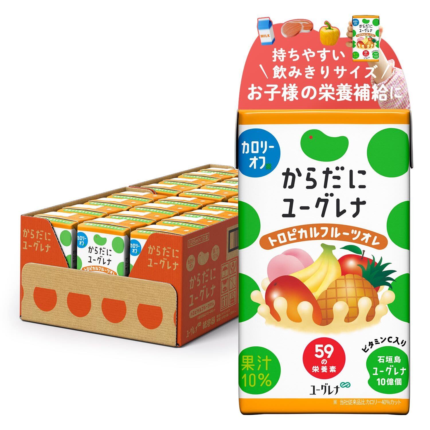 からだにユーグレナ トロピカルフルーツオレ カロリーオフ 24本 ユーグレナ 紙パック 子供 ジュース 野菜ジュース ミドリムシ ビタミン 野菜 食物繊維 ミネラル