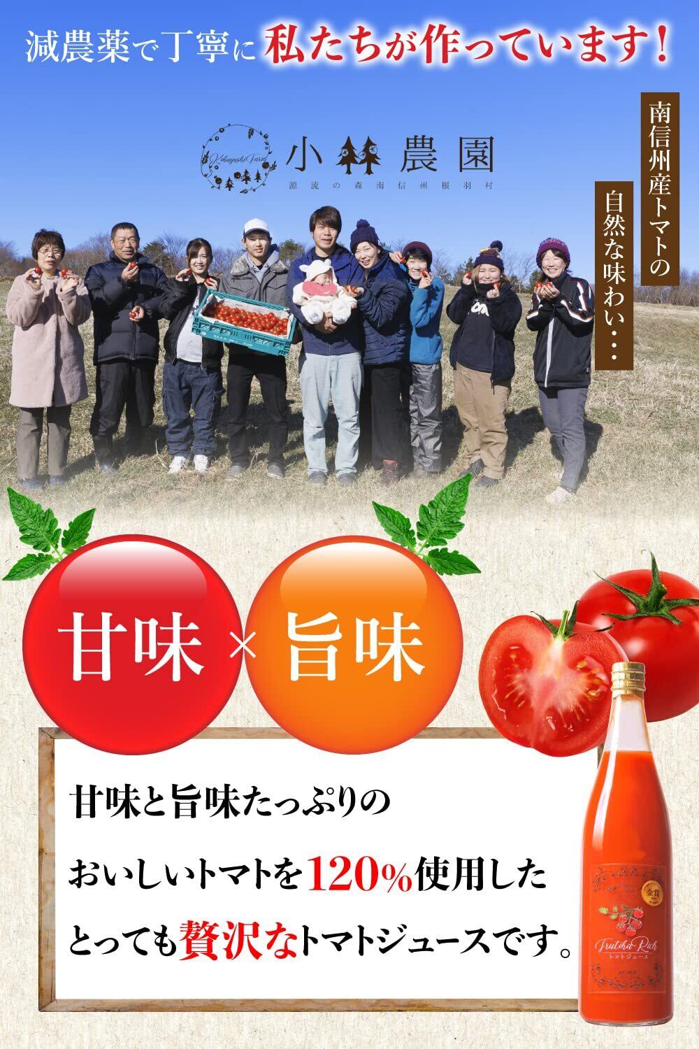 【濃厚で特別なトマトジュース】甘み、酸味、旨味のバランスが良く、トマトを120%濃縮させた濃厚で贅沢なトマトジュースです。