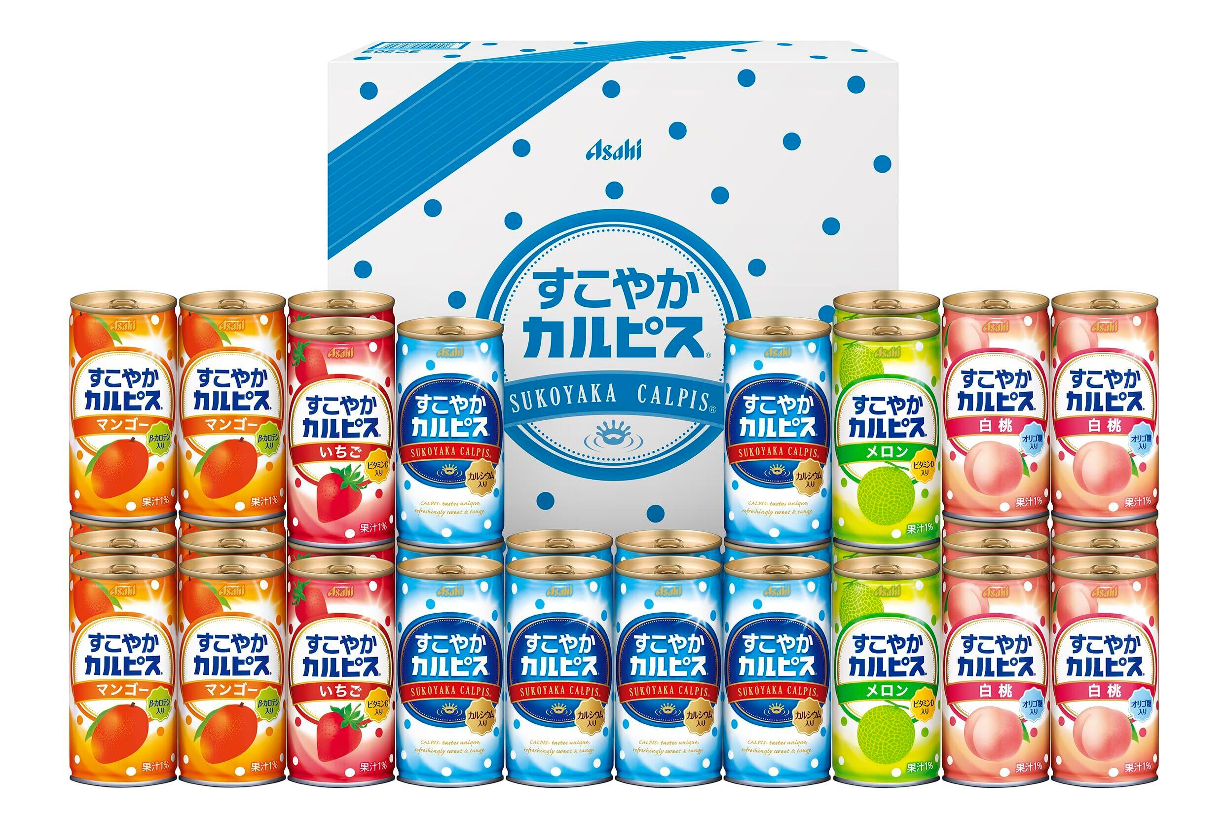 すこやかカルピス」 缶190g10本,「すこやかカルピス」白桃 缶190g8本,「すこやかカルピス」メロン 缶190g5本,「すこやかカルピス」いちご 缶190g5本,「すこやかカルピス」マンゴー 缶190g8本
