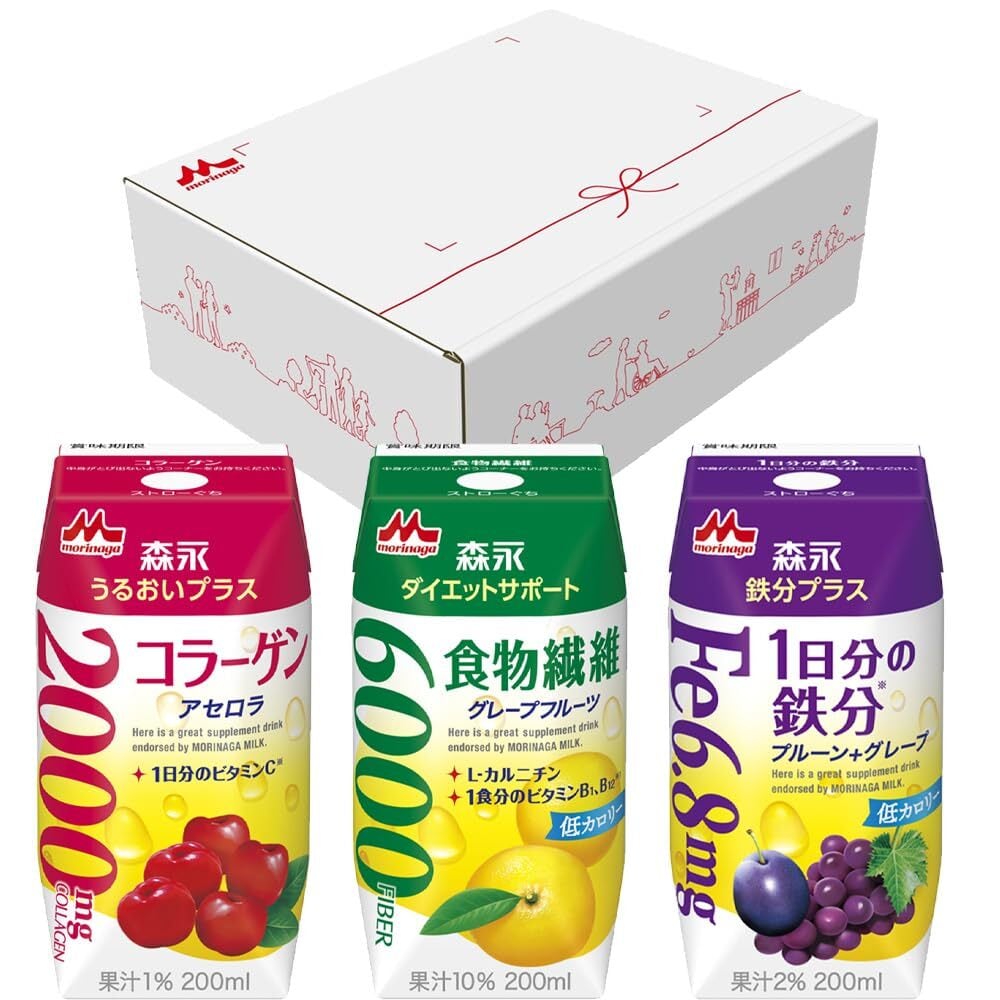 森永乳業 森永栄養プラスアソートセット 200ml×24本( 1日分の鉄分 プルーン+グレープ、コラーゲン アセロラ、食物繊維 グレープフルーツ)[ ジュース 詰め合わせ 母の日 ギフト プレゼント ]