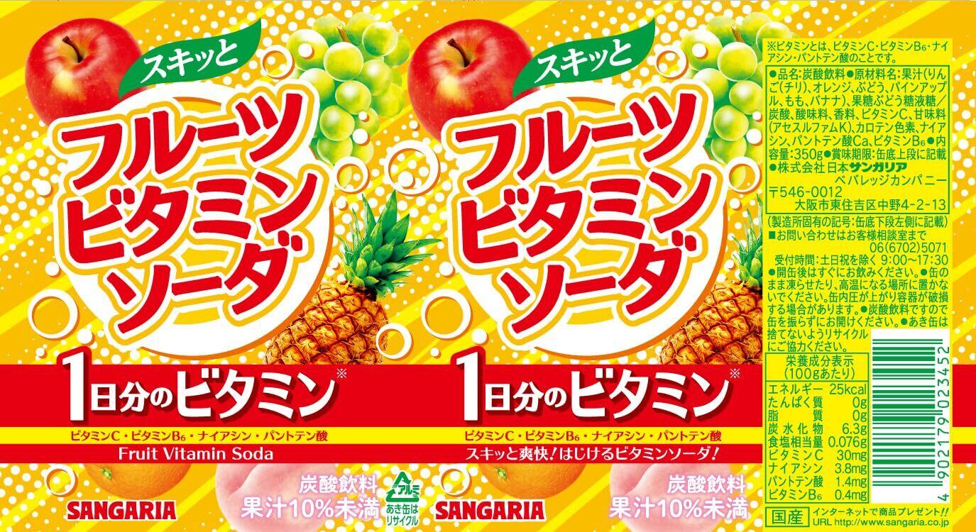 サンガリア スキッとフルーツビタミンソーダ 350g ×24本