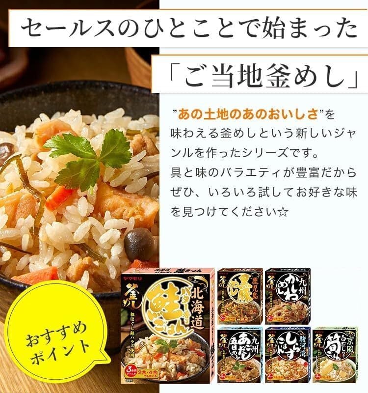 釜めしの素の元祖メーカー、ヤマモリ釜めしの素シリーズを比べながらお楽しみください。