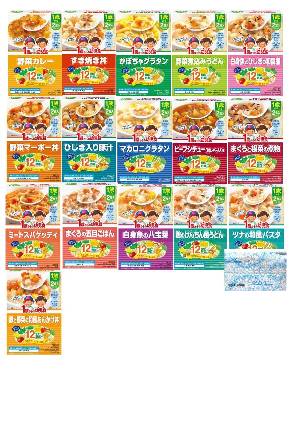 離乳食 ベビーフード 食べ比べセット グリコ 1歳からの幼児食 2食入 全16種×各1個 オリジナルポケットティッシュと使い捨て前掛け付き