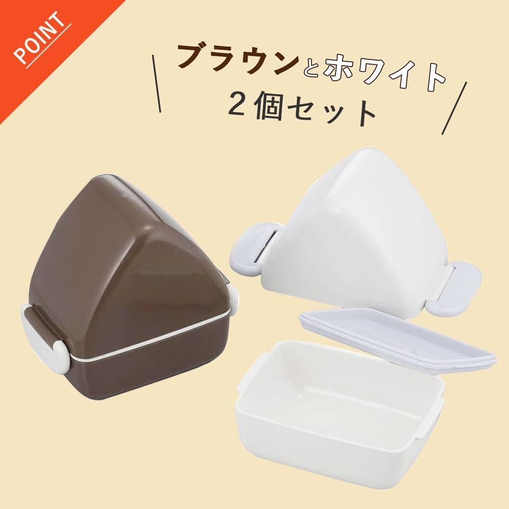 下村企販 おかずも入るおにぎりケース 2個組 【日本製】 コンビニおにぎりOK 潰さず運べる 電子レンジ対応 お弁当 ランチボックス コンパクト 耐熱 アウトドア ブラウン ホワイト 燕三条 44297