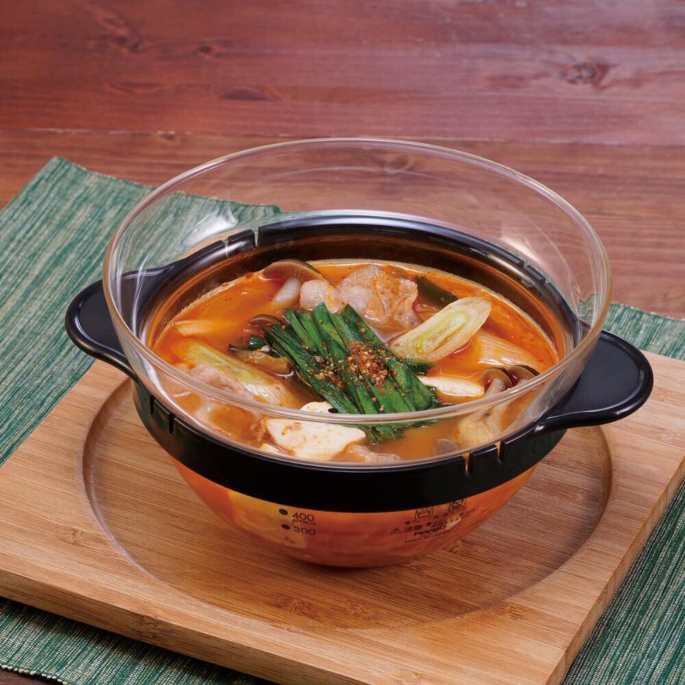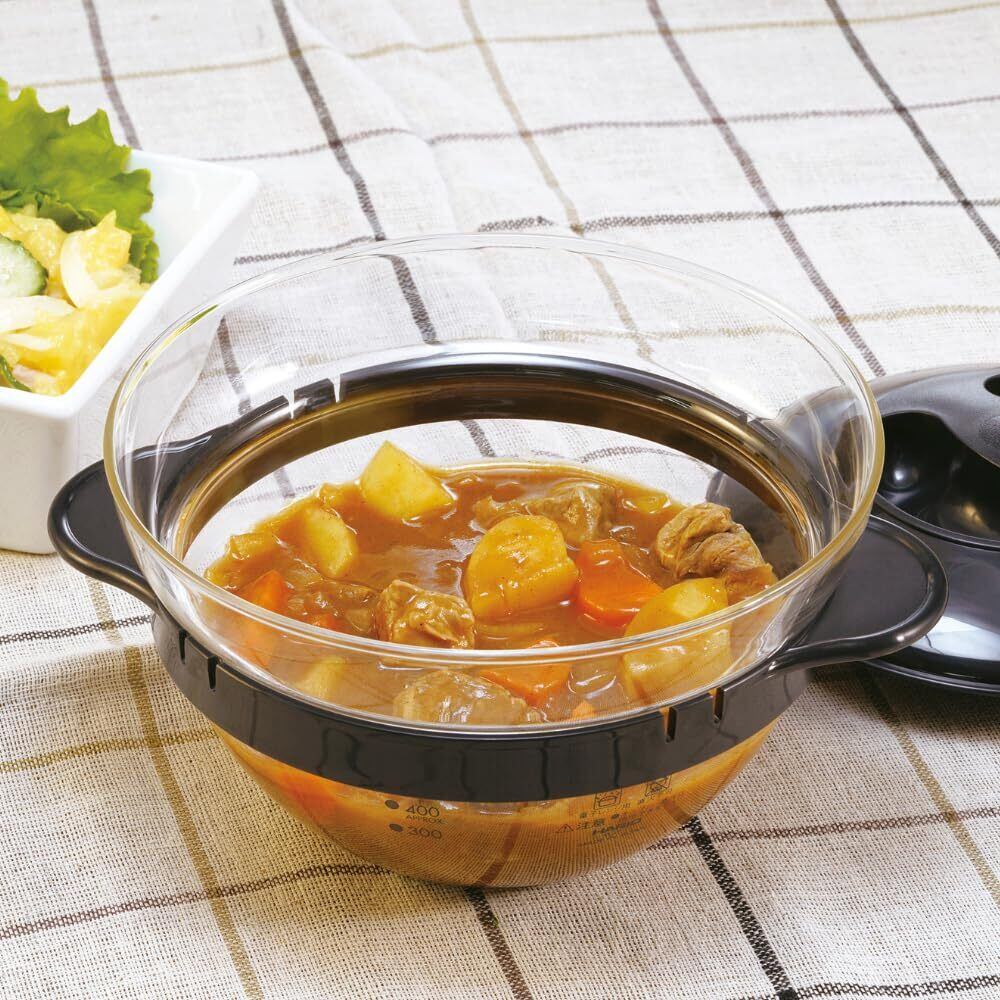 HARIO(ハリオ) ガラスのレンジおかず鍋 電子レンジ用 レンジで簡単調理 ブラック 実用容量450ml 日本製 クリームスープ 手作り XOY-1-B