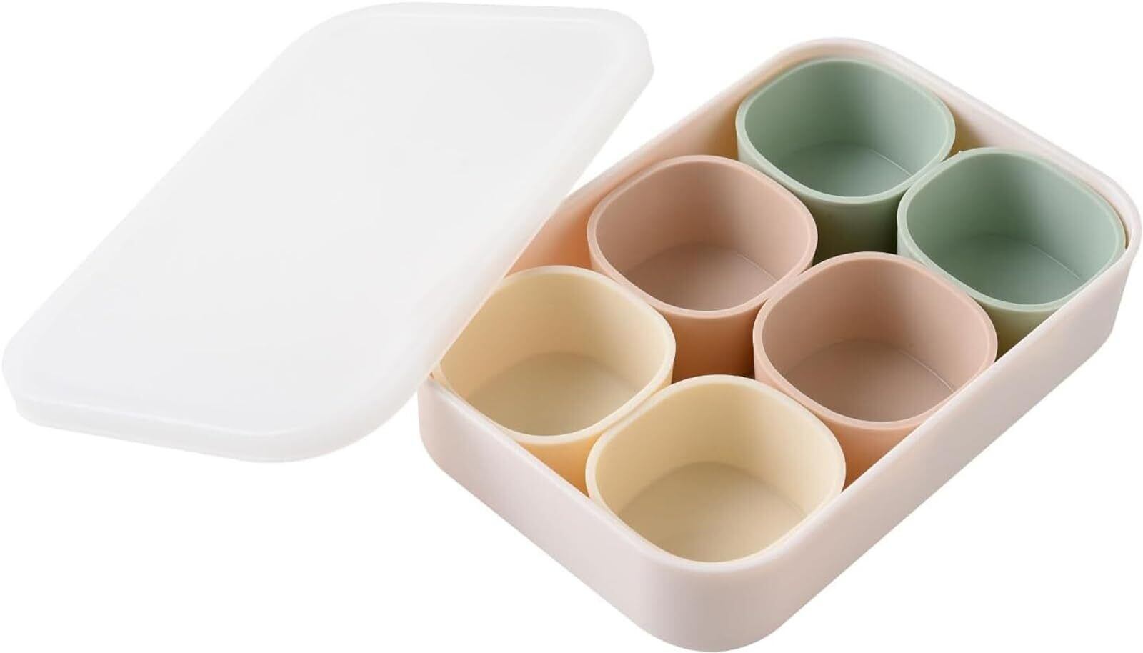 ●セット内容:ケース本体・フタ…各1個、カップ…6個(3色各2個)●ケース[サイズ(約)]幅16.5×奥行11×高さ3.5cm[材質]ポリプロピレン[重量(約)]55g[容量(約)]520ml[耐熱]140℃[耐冷]-20℃●フタ[サイズ(約)]幅17×奥行11.5×高さ1cm[材質]ポリエチレン[重量(約)]40g[耐熱]60℃[耐冷]-20℃●カップ[サイズ(約)]幅5×奥行5×高さ3cm[材質]シリコーンゴム[重量(約)]15g[容量(約)]50ml[耐熱]230℃[耐冷]-20℃●お手入れ:フタ以外食洗機対応