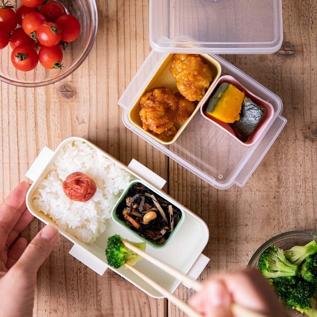 シリコーンカップ付きなので作り置きしたおかずをそのままお弁当につめられます。