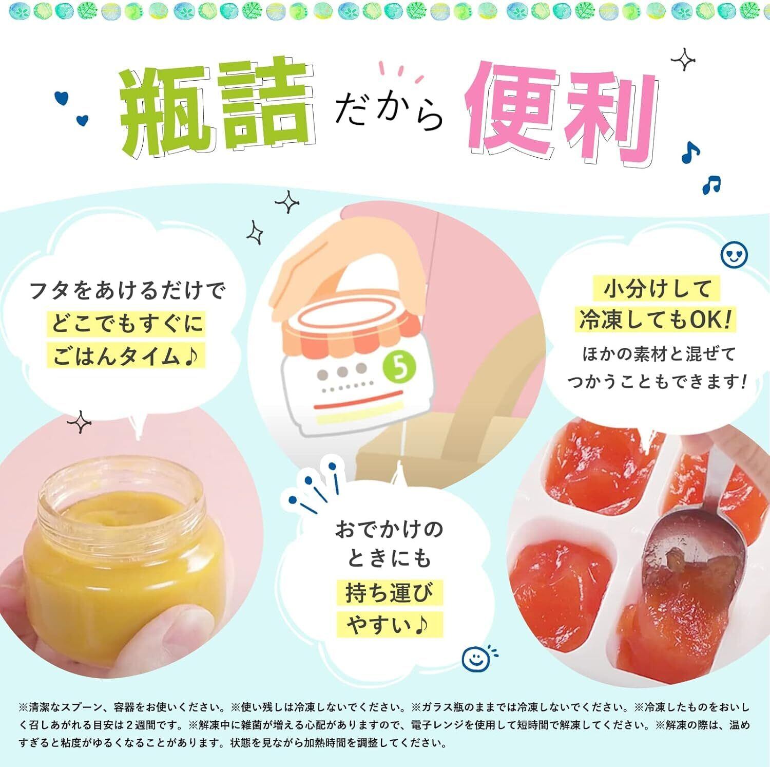 ○国産ももとりんご(4個):国産の裏ごししたももと角切りりんごを使用し、やさしい甘さに仕立てました。