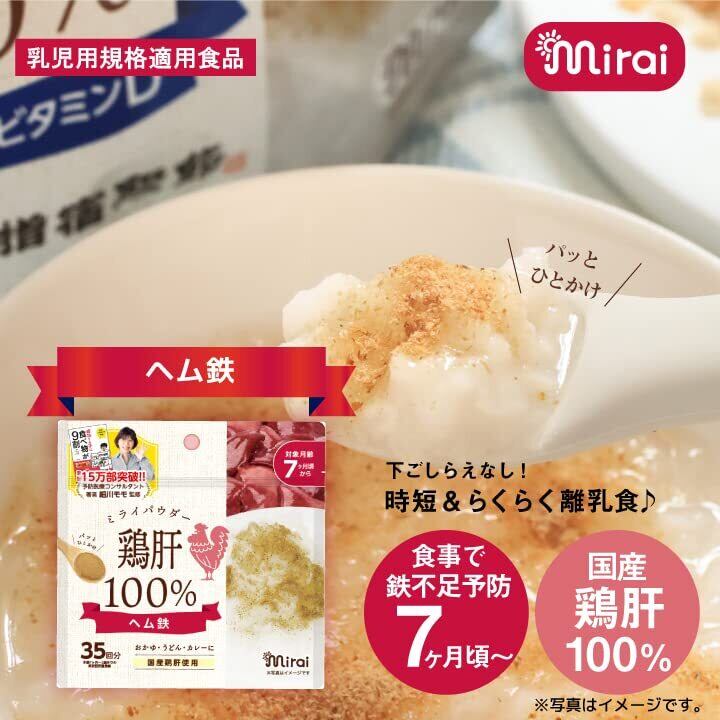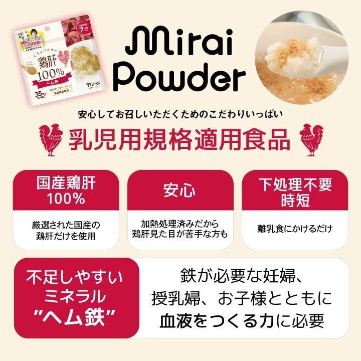 離乳食 パウダー ミライパウダー 鶏肝 乳児用規格適用食品 ヘム鉄 細川モモ 7か月から 国産鶏肝 おかゆ ベビーフード 赤ちゃん 粉末 レバー 下処理不要