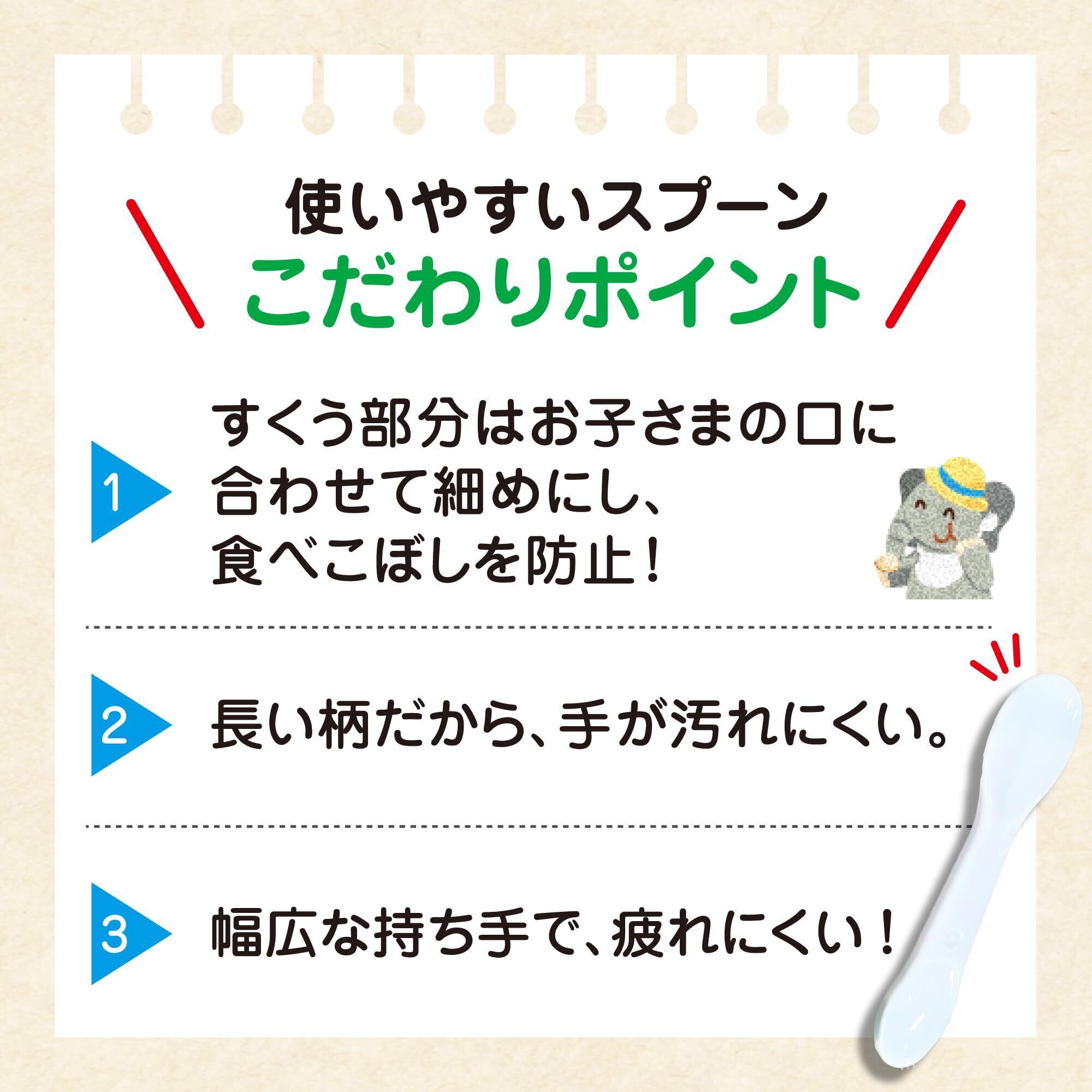 直射日光を避け、常温で保存してください。食べ残しやつくりおきはあげないでください。月齢は目安です。あせらずに段階的にすすめましょう。離乳のすすめ方については、専門家にご相談ください。スプーンはお子さまに持たせないでください。スプーンは使い捨てです。気温の低いところに保管すると内容物が白くなることや固くなることがありますが、品質には問題ありません。