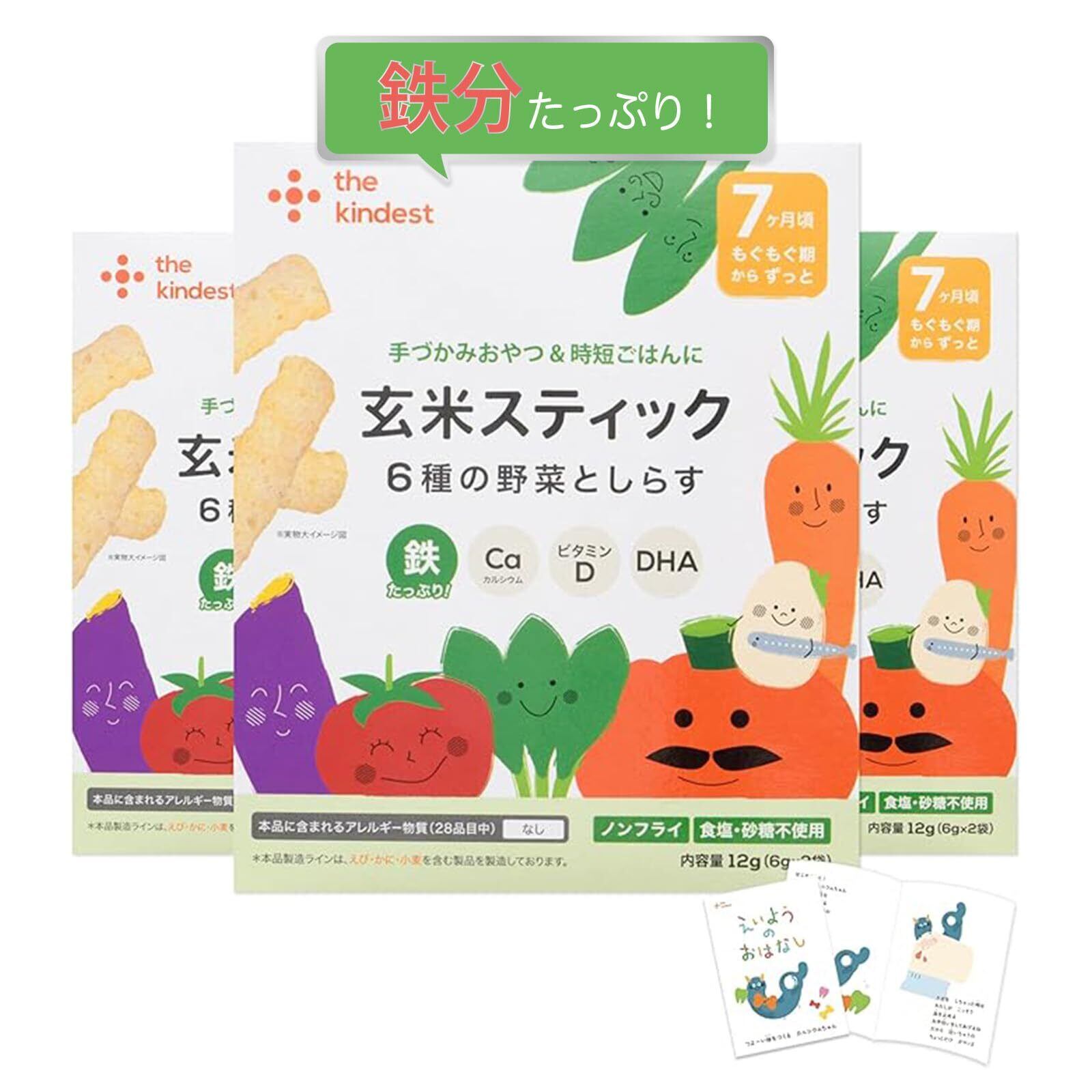 the kindest ( カインデスト )玄米スティック(6種の野菜としらす)えいようのおはなし付き [7ヶ月 から 赤ちゃん おやつ スナック ベビーフード 幼児 発芽玄米 野菜 鉄 ] 6g/2袋×3箱