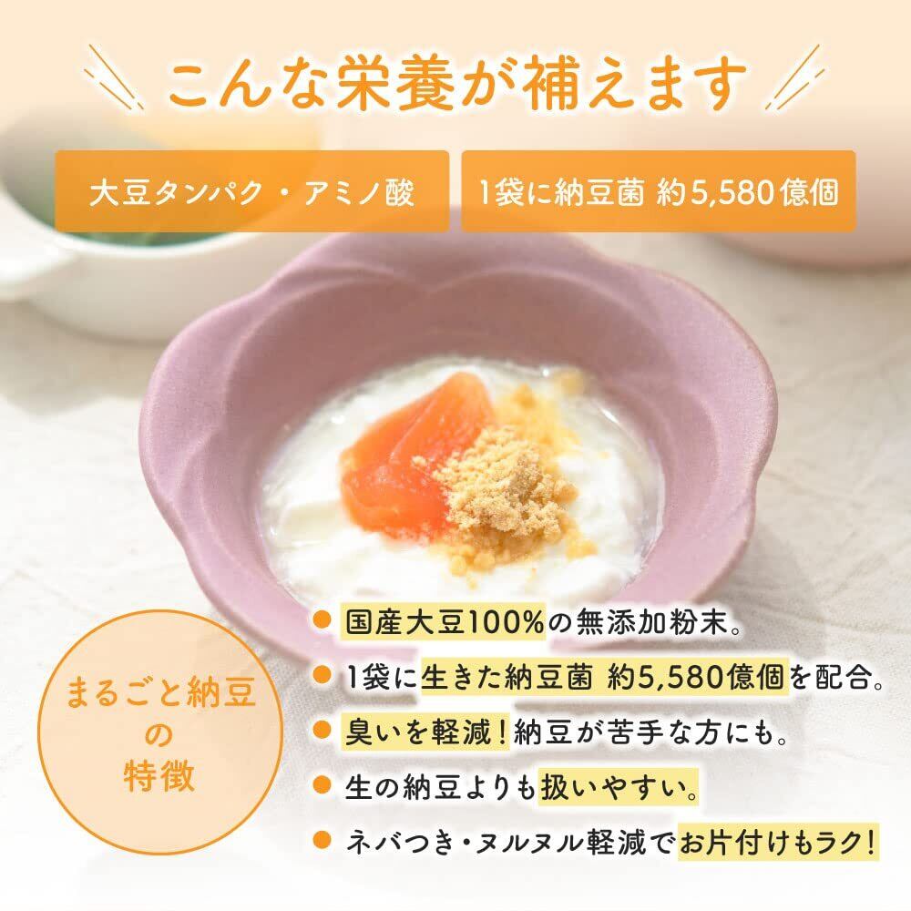 【あっという間に栄養満点の離乳食が完成】 「納豆を離乳食や幼児食に取り入れたいけど、下処理が大変…」そんなお悩みも、パウダータイプなら解決です。ふりかけるだけなので、毎日忙しいママ&パパの強い味方!混ぜたりつぶしたりする手間がなく、においも軽減されているので納豆が苦手でも食べやすくなっています。
