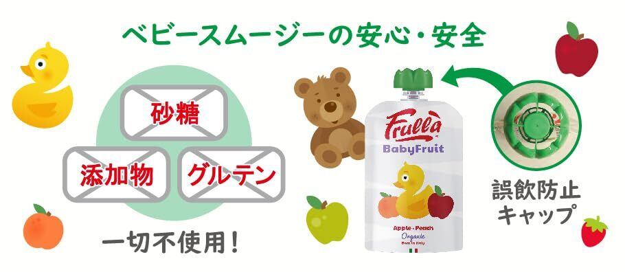 イタリアからやってきた赤ちゃんにやさしいフルーツ100%のオーガニックスムージーです。