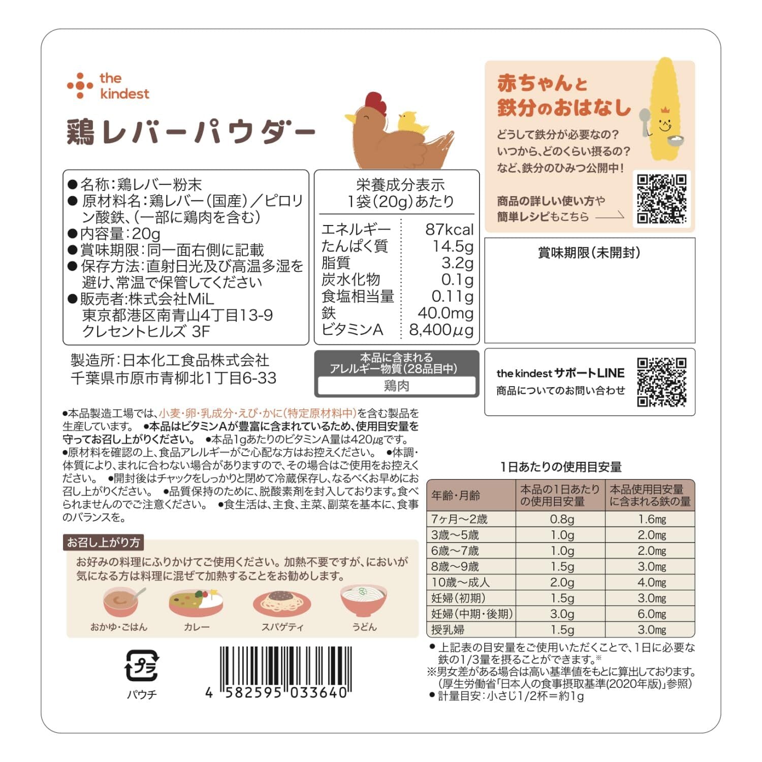 the kindest ( カインデスト )鉄分 たっぷり 国産 鶏 レバー パウダー えいようのおはなし付き[離乳食 ベビーフード 離乳食中期 7ヶ月 鉄分 ] ×2個