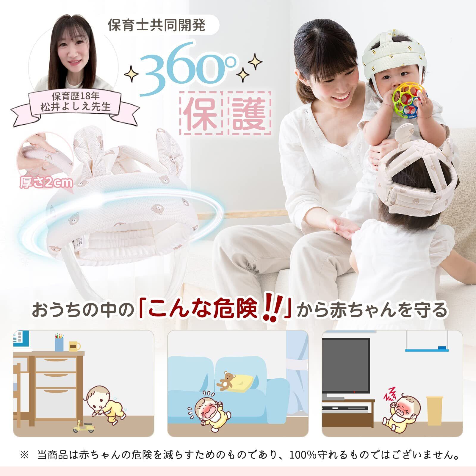 【赤ちゃんを守るために保育士と共同開発】ハイハイや歩きたての赤ちゃんの危なっかしい行動がとっても心配だと思います。そんな赤ちゃんの怪我のリスクを減らすために、より多くの赤ちゃんと過ごしてきた保育歴18年の保育士さんと共同開発した360°保護型のヘッドガードです。