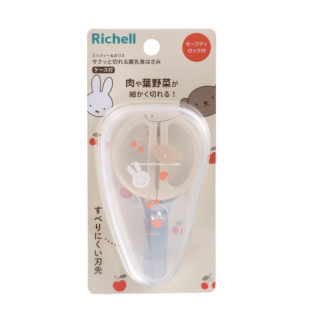 リッチェル(Richell) ミッフィー&ボリス サクッと切れる離乳食はさみ(ケース付) 持ち運びやすい 食器を傷つけない セーフティーロック付き 安全 切れ味が良い すべりくい 麺カッター 食洗器対応