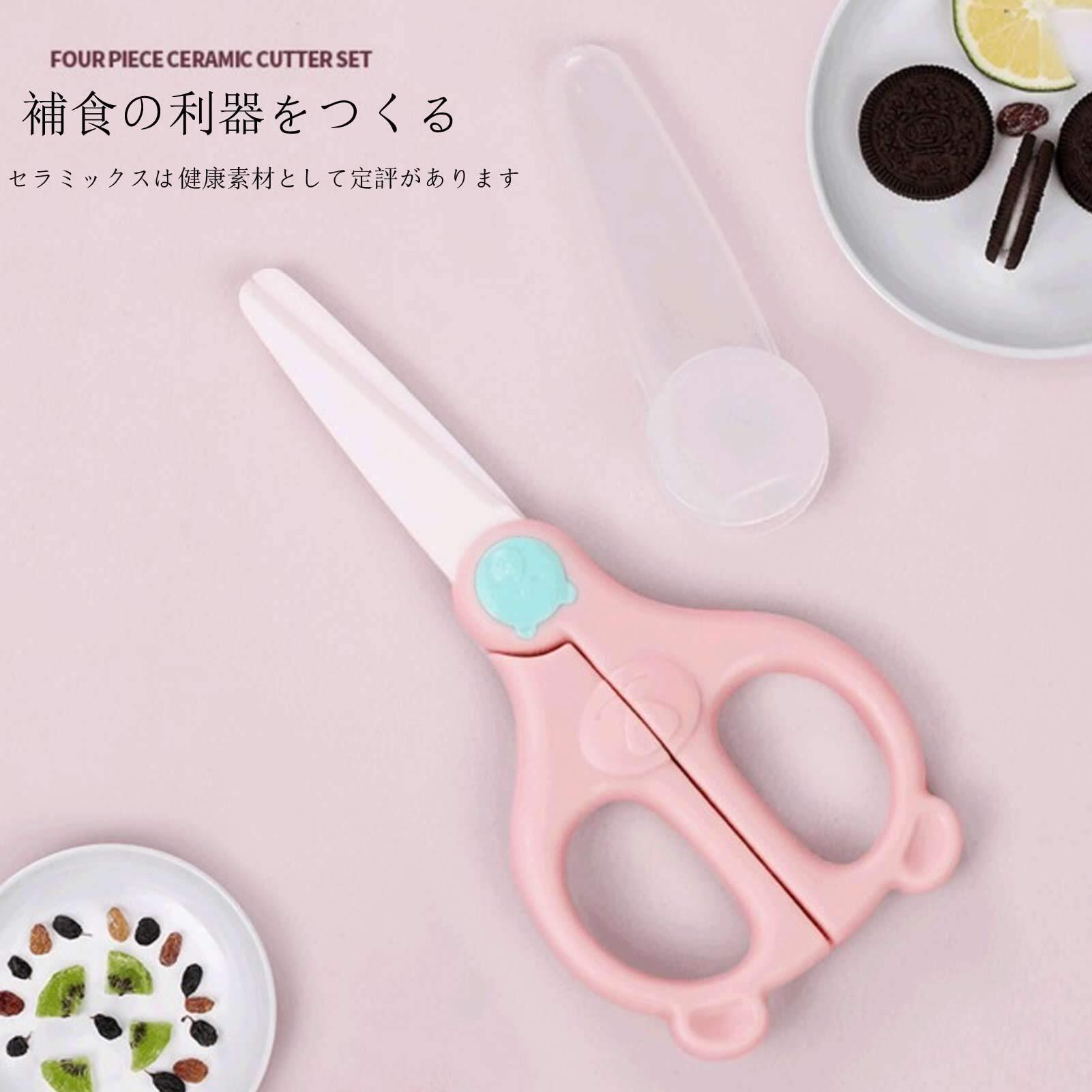 セラミックキッチンハサミ 離乳食 離乳食用カッター 離乳食 はさみ 料理はさみ キッチンハサミ ベビーフード切り 抗菌 錆びない 柔軟な(収 納ケース付き)離乳食調理器具 (ピンク)