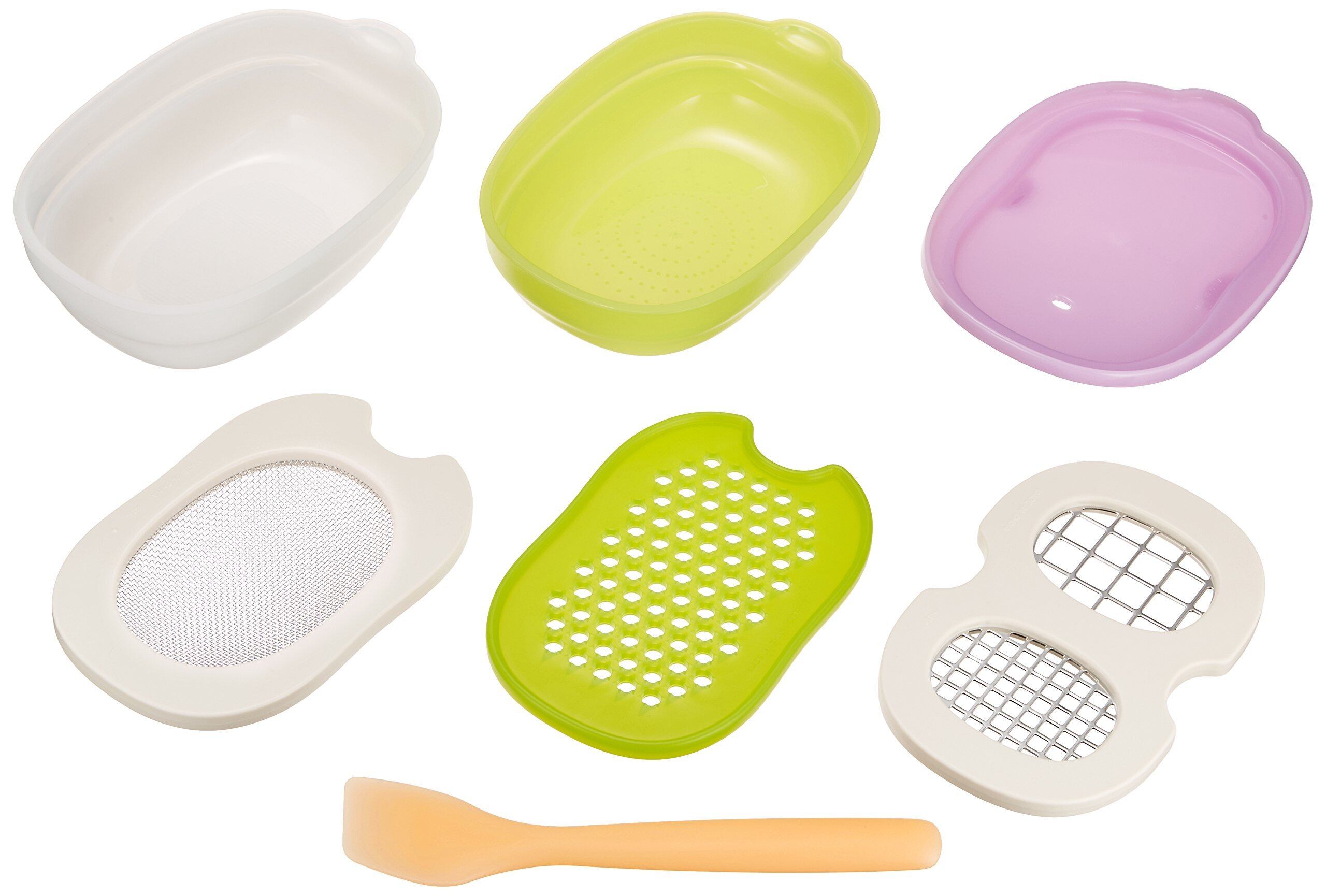 離乳食初期~完了期までをしっかりナビゲートする調理器セットです、お子様の成長に合わせた離乳食作りがこれ一つでOK! すりつぶし、ゆでる、加熱・解凍、角切り、すりおろし、裏ごしがこれ1セットで可能です! はじめてのママに嬉しい簡単レシピBOOK付きなので離乳食調理がすぐに始められます!