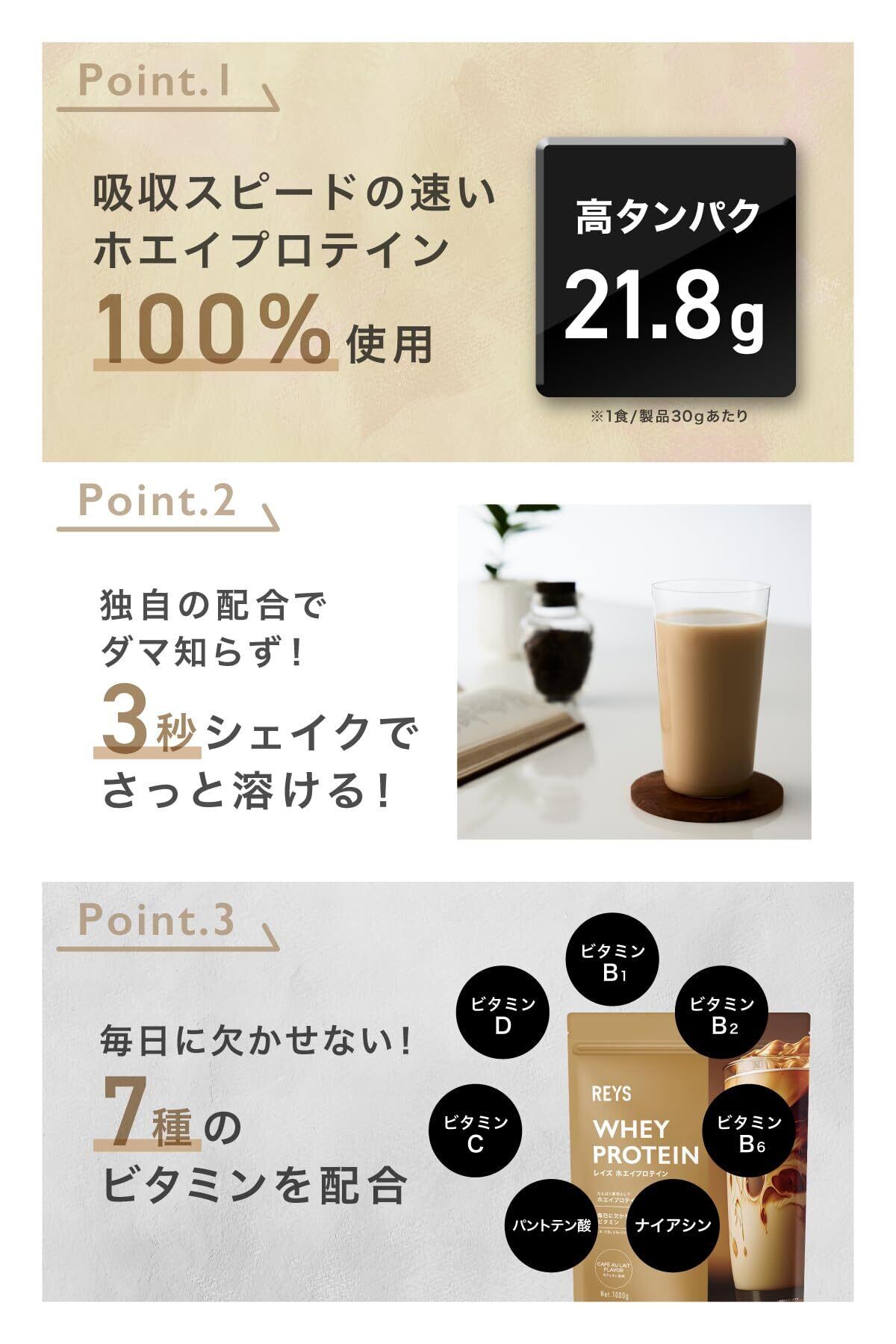 REYS レイズ ホエイ プロテイン 山澤 礼明 監修 1kg 国内製造 ビタミン7種配合 WPCプロテイン ぷろていん ホエイプロテイン (カフェオレ風味)