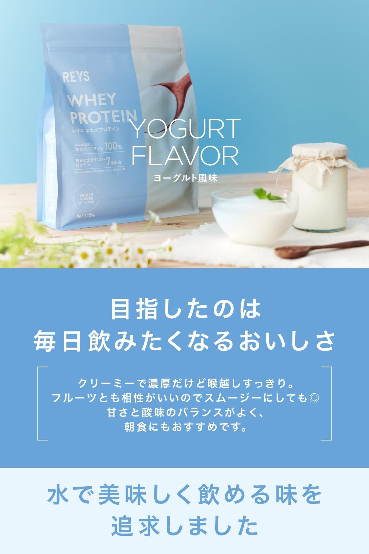 REYS レイズ ホエイ プロテイン 山澤 礼明 監修 1kg 国内製造 ビタミン7種配合 WPCプロテイン ぷろていん ホエイプロテイン (ヨーグルト風味)