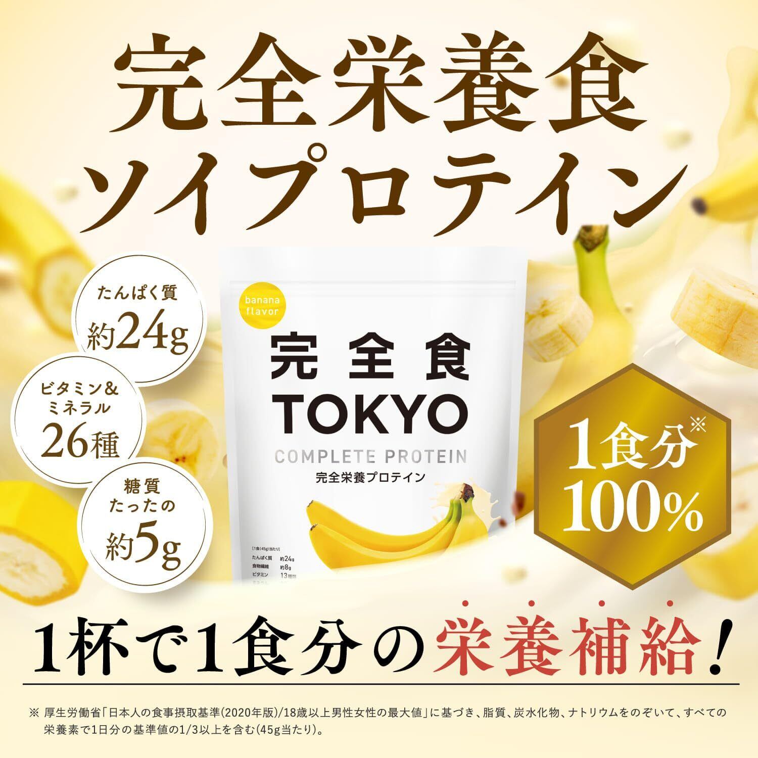 【必要な栄養これ1杯で】完全食TOKYO 完全栄養食 ソイプロテイン バナナ風味 765g ダイエット 置き換え 国内製造 おいしい たんぱく質24g 食物繊維 30種の栄養 1食分のビタミン&ミネラル26種 プラセンタ 乳酸菌500億個 MCTオイル ビフィズス菌50億個 酵母
