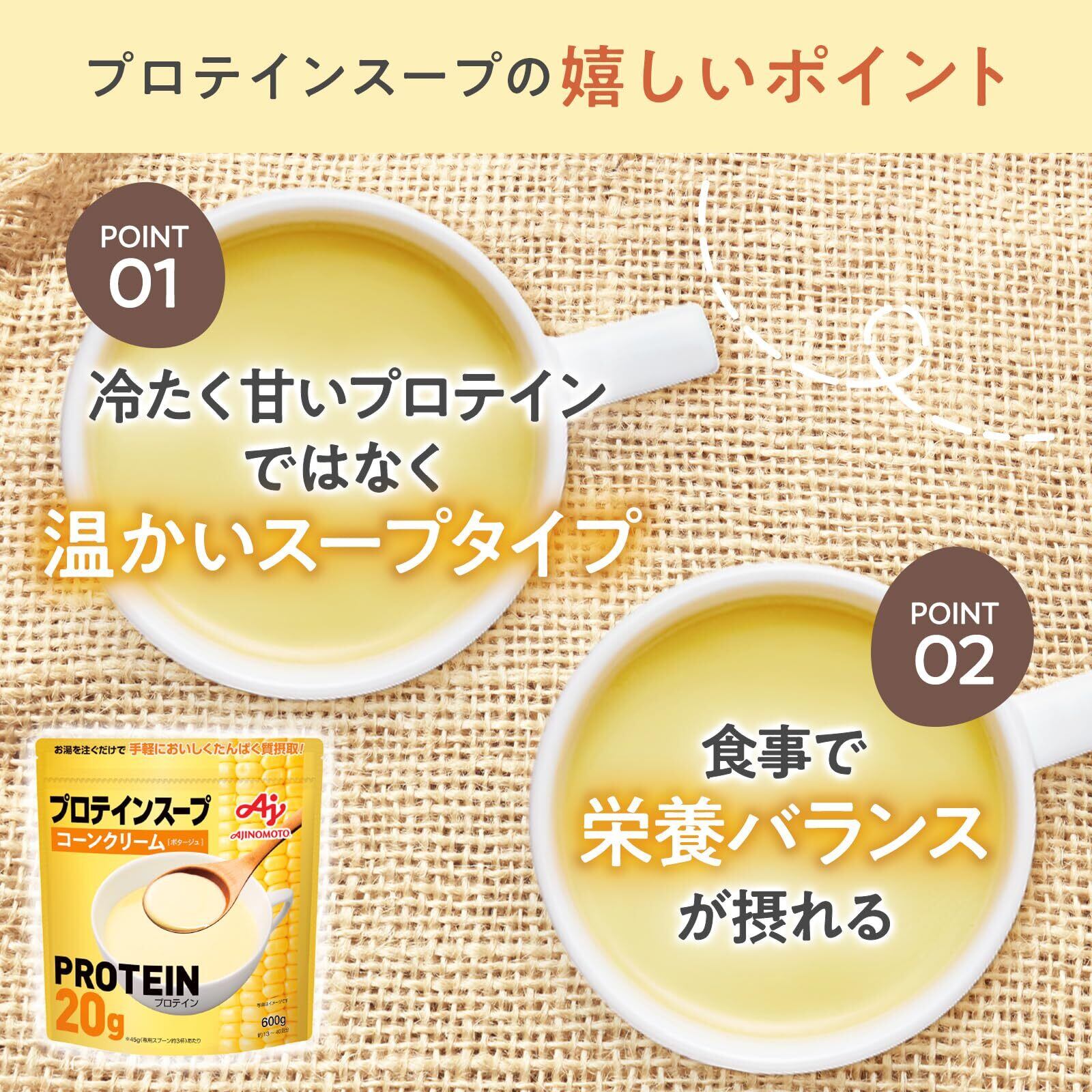 Ajinomoto 味の素 プロテインスープ コーンクリーム 600g 1食あたりたんぱく質20g ホエイプロテイン whey protein インスタント タンパク質
