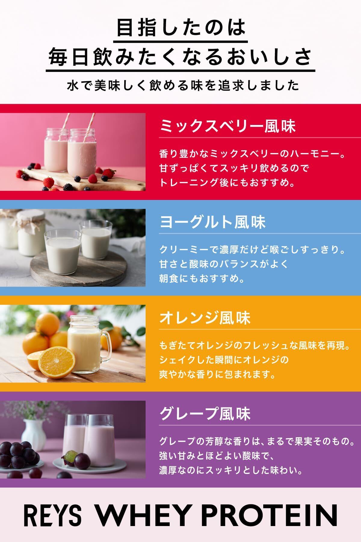 REYS レイズ ホエイ プロテイン お試し セット 個包装 30g × 4種 山澤 礼明 監修 国内製造 ビタミン7種配合 WPCプロテイン ぷろていん ホエイプロテイン ミックスベリー ヨーグルト オレンジ グレープ (4個セット, フルーツ&ヨーグルトフレーバー)