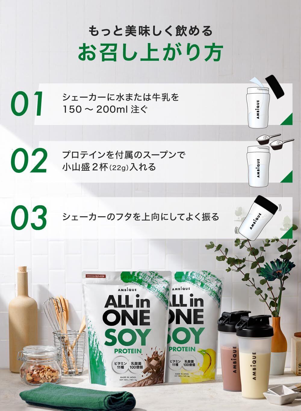 アンビーク AMBiQUE ソイプロテイン 1kg 乳酸菌100億個 ビタミン11種配合 SOY 大豆 植物性プロテイン ダイエット 置き換え (1kg, チョコレート)