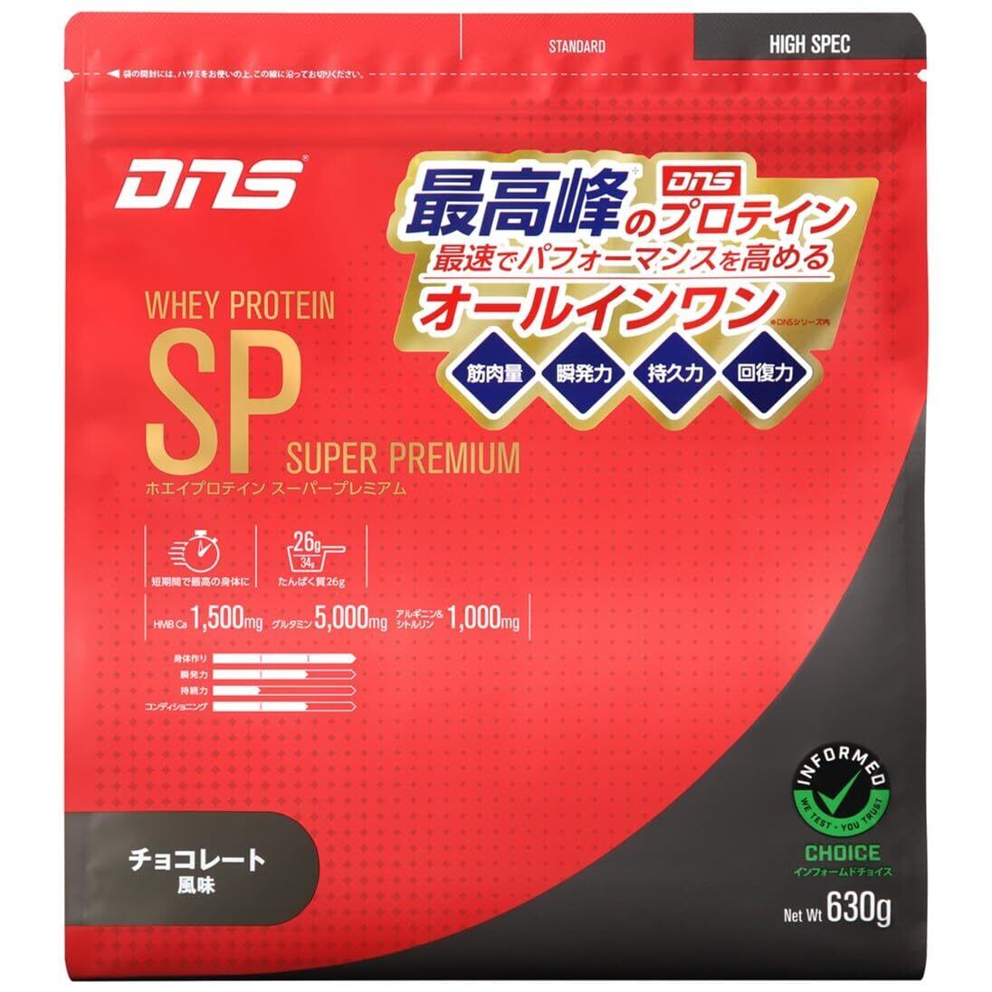 DNS ホエイプロテイン SP (スーパープレミアム) チョコレート風味 630g 国内製造 HMB グルタミン アルギニン シトルリン オールインワン 短期間 リカバリー 筋トレ 水で飲める